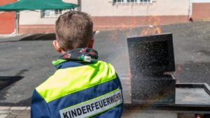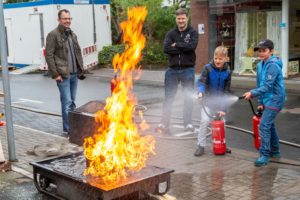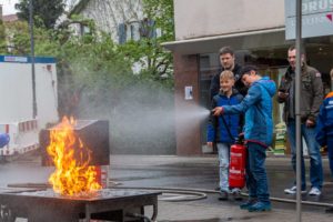 Man konnte an einem Löschtrainer den Umgang mit Feuerlöschern üben. Des weiteren gab es eine Mal- und Bastelecke, so wie ein Ruhezone, um seine Kräfte aufzutanken.