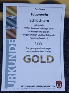 Erfolgreiches Team der Freiwilligen Feuerwehr Schlüchtern, dass an der VDFU Rescue Challenge in Hemer teilgenommen hat.