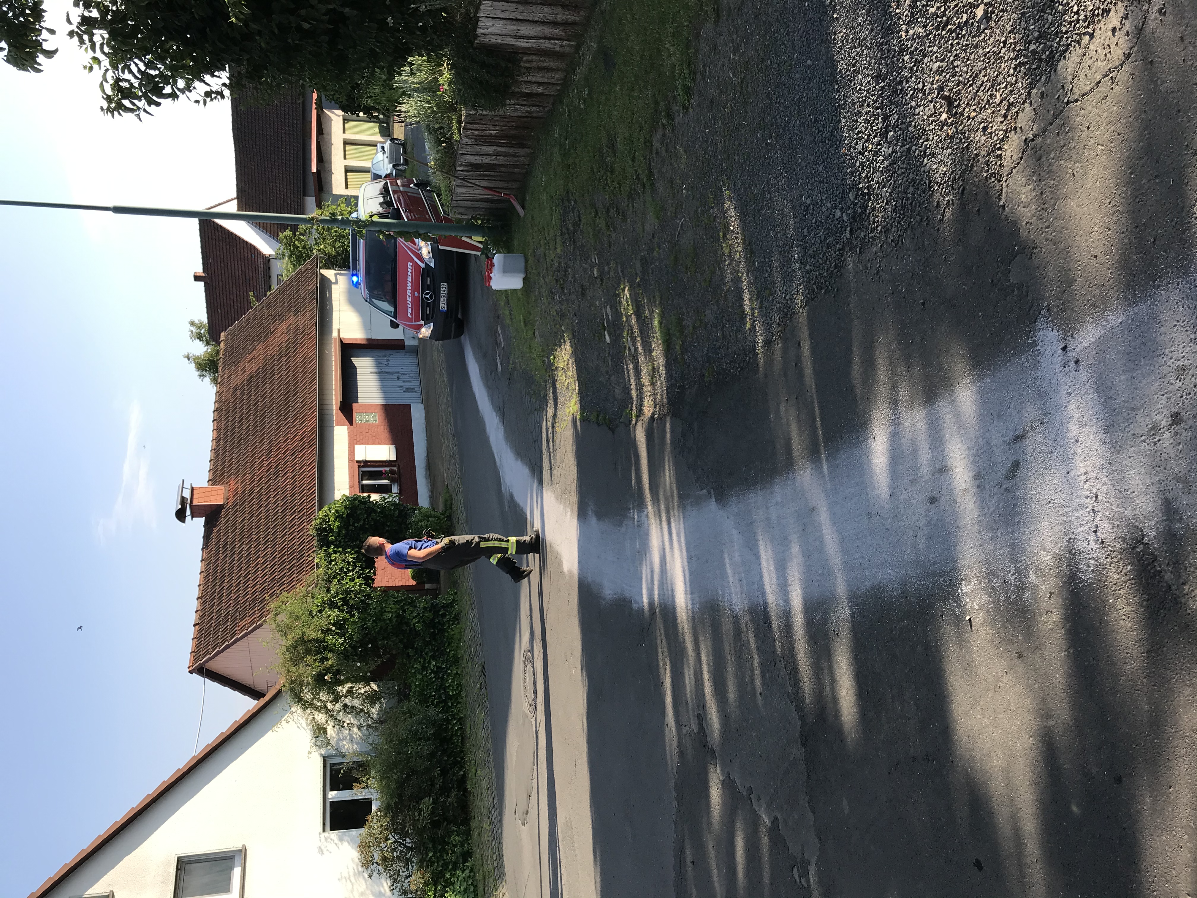 Lage: Eine ca. 200 Meter lange Ölspur wurde durch die Feuerwehr mittels Bindemittel beseitigt. Ebenso wurden entsprechende Absciherungsmaßenahmen durchgeführt.