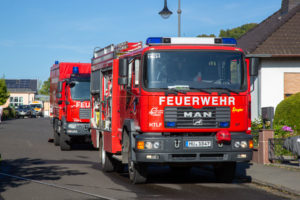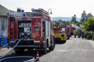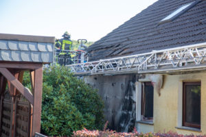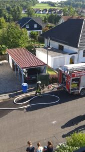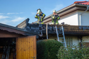 Lage: Die Feuerwehr Schlüchtern-Innenstadt wurde alarmiert, da zwischen zwei Wohnhäusern der Dachbereich einer Garage in Brand geraten war. Noch während der Anfahrt der Innenstadtwehr wurde das Einsatzstichwort auf Dachstuhlbrand erhöht, da die Anrufer ein Übergreifen des Brandes von der Garage auf beide Wohnhäuser meldeten. In diesem Zuge wurde die Feuerwehr Herolz durch die Leitstelle ebenfalls alarmiert. Vor Ort eingetroffen bestätigte sich der Brand an einem der beiden Wohnhäuser. Wegen der maßiven Rauchentwicklung am zweiten Wohnhaus wurde die Drehleiter von Bad Soden-Salmünster nachgefordert, während in beiden Häuser Feuerwehrkräfte unter Atemschutz zur Erkundung vor gingen. Am zweiten Wohnhaus konnte dann zum Glück schnell Entwarnung gegeben werden. Durch das schnelle Eingreifen der Feuerwehr konnte ein Übergriff der Flammen auf das benachbarte Wohnhaus verhindert werden. Es musste lediglich die starke Verrauchung mittels Hochleistungslüfter beseitigt werden. Da es vor Ort fünf betroffene Personen gab, die vermutlich zu lange dem Brandrauch ausgesetzt waren, kam ein zweiter Rettungswagen und ein Notarzt noch zur Einsatzstelle. Von den fünf Betroffenen musste allerdings lediglich eine Person zur Weiterbehandlung ins Krankenhaus transportiert werden.
