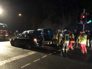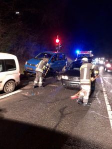 Lage: Am frühen Abend wurde die Innenstadtwehr gemeinsam mit dem Rettungsdienst zu einem Verkehrsunfall im Bereich Umgehungsstraße alarmiert. Vor Ort kollidierten beim Abbiegen zwei PKW wobei eine Person leicht verletzt wurde. Durch die Feuerwehr wurde bis zum Eintreffen der Polizei die Einsatzstelle abgesichert.